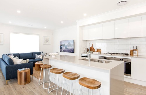 The warmly illuminated dining room sets the scene for shared meals, crafted in a fully equipped modern kitchen boasting every essential, from a Dishwasher to a Coffee Machine. Your culinary adventures are met with seamless convenience. The barbecue on your private and undercover alfresco patio invites you to relish sunset dinners in the open air. Children will delight in an array of board games, while a Smart TV and Netflix subscription keep the entire family entertained.