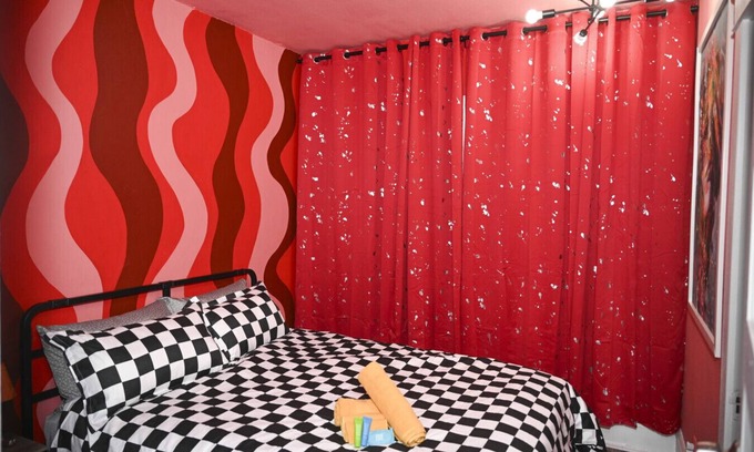 Bold and passionate, this room features a cozy queen bed and vibrant red decor, creating a space full of energy and warmth.