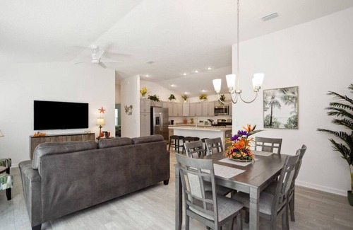 Your sun-soaked escape awaits at Palm Paradise Joseph Villa, a thoughtfully designed, brand-new retreat in the highly desirable Villages of Dabney. This charming villa captures the carefree spirit of Florida with its crisp white palette, palm-inspired décor, and welcoming layout—perfect for guests looking to relax and enjoy everything The Villages has to offer.