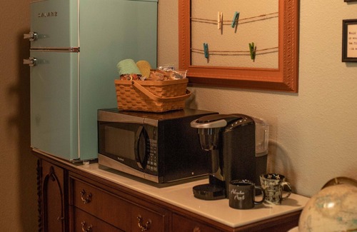 You will enjoy a spacious bedroom, large bathroom, living room with sofa bed and a kitchenette complete with mini-fridge, microwave, coffee maker, and some snacks, and fast internet.