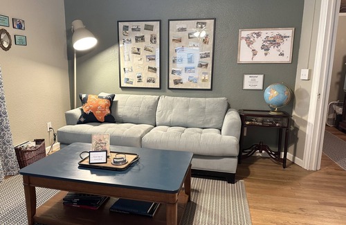 The "Compass South", which is one of two units in The Compass, and is decorated with a travel theme using unique vintage travel memorabilia and souvenirs from our travels around the world.