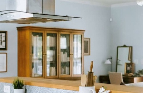What’s an Air Bed and Breakfast without the breakfast? Flowing directly from the living room is the kitchen, Quaint and stocked with all you need to feed your loved ones, we cut no corners here! In the cabinets, you’ll find all the utensils, platters, and accouterments needed to handle any sized meal your family desires. Whip up a mean stack of pancakes or a cool cobb salad and treat your family right!
