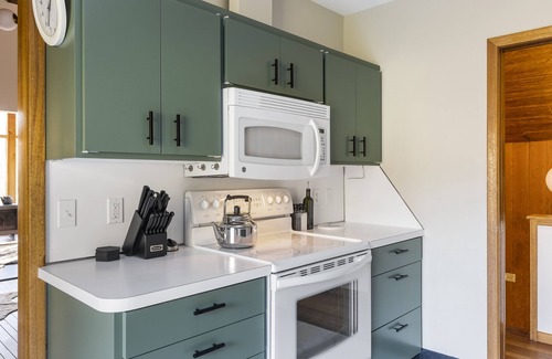 There is a fully stocked kitchen if you plan to prepare meals to enjoy at the spacious dining table. There are 3 bedrooms and 2 full bathrooms in the home. The master bedroom, complete with a king bed and reading chair, is on the upper level and was designed with style and comfort in mind. Plenty of room to unpack with ample closet space and drawers. A full bath is conveniently right outside this room. Head down to the lower level to find the remaining two beds and another full bath. There is also an additional living room on the lower level making it easy to spread out and relax during your stay. There is no shortage of natural light as the lower level is walk-out. Choose from an abundance of games that were treasured by our family for generations or catch a movie on the large flat screen TV.