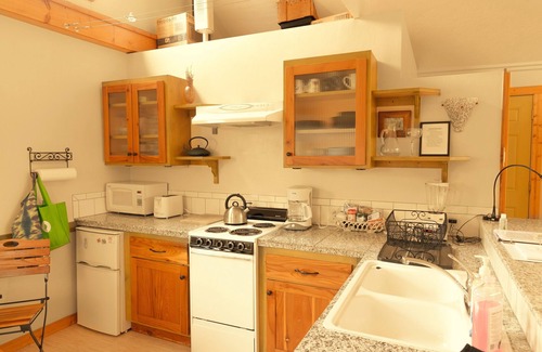 Owned and designed by artists, the cottage is a renovated (in 2007)glassblowing studio with unique and handmade details throughout. The new glass art studio is also on the property, and you are welcome to watch us blow glass when we are working.