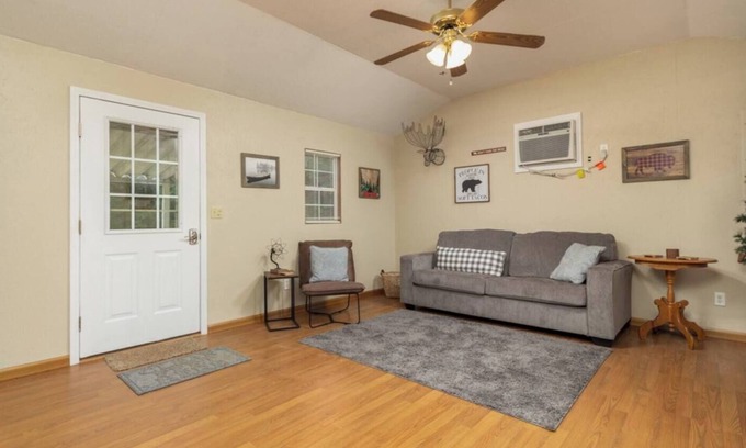 The Cottage at Mineral Reserve is the perfect place to surround yourself with nature and enjoy evenings making smores and memories over your personal fire pit! Located only 5min from Bennett Springs State park allowing access to the Niangua River for fishing, canoeing and hiking trails. Lebanon is a short drive to grab groceries or entertainment. Only a 45min drive will land you at the famous Lake of the Ozarks offering go karting, putt putt golf, boating, jet ski rentals and amazing food