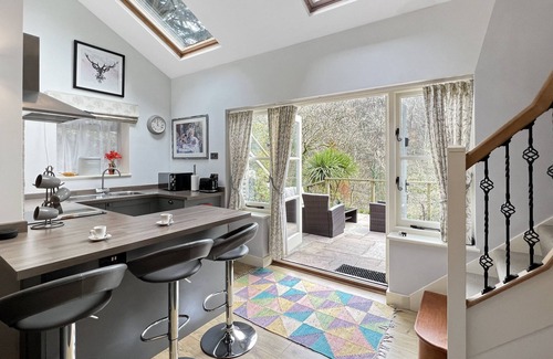 The Cottage at Woodlands near Lynton and Lynmouth is a modern self-catering apartment for 2 with stunning views over the West Lyn Valley. Enjoy the peaceful sounds of birds and the river, and relax on your private sunny terrace with HOT TUB. A perfect retreat for unwinding in the beauty of Exmoor.