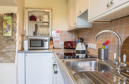 Ground floor Living room with solid oak floor, Multi-fuel burning stove (initial fuel included) four piece leather suite and Freeview flat screen TV with Blu-ray DVD, 4 steps to kitchen/dining area with stone floor, fully equipped kitchen with electric cooker and hob, microwave, washing machine DAB radio, pine farmhouse table and 4 chairs and stable door to lawned garden with sitting-out area and patio furniture and BBQ.