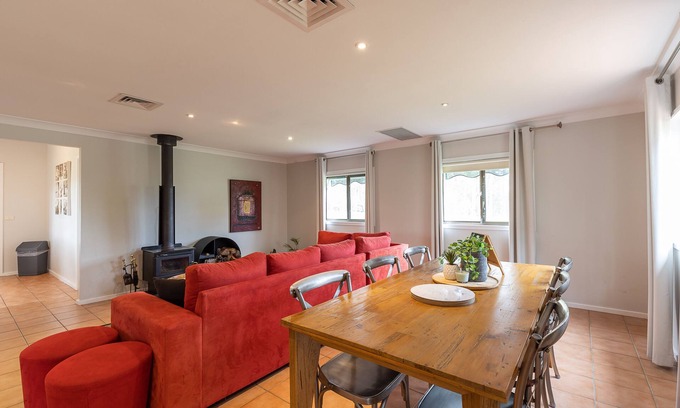 Nestled on a sprawling 14-acre property, The Cottage @ Hunter Gleann puts you just steps away from local attractions. Indulge in a leisurely stroll across the paddock to Restaurant Botanica and Spa Anise at Spicers Vineyards Retreat, or venture into the nearby wine country to explore countless wineries and delightful eateries. Whether you're planning a romantic outing, a festive family gathering, or a wedding celebration, your experience in Pokolbin will be nothing short of magical.