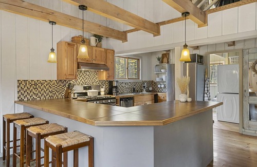 Your stay at The Cottage will be complemented by a range of amenities that elevate your wedding experience. The cozy interior boasts three beautifully appointed bedrooms, accommodating guests comfortably, while the open-concept kitchen and inviting living areas provide perfect spaces for family and friends to gather. Step outside to enjoy the deck and firepit area, ideal for post-ceremony mingling under the stars. The rustic charm of this property is accentuated by its thoughtful features, including a mudroom for convenience and a loft with serene reading nooks—for those quiet moments of reflection before your big day.