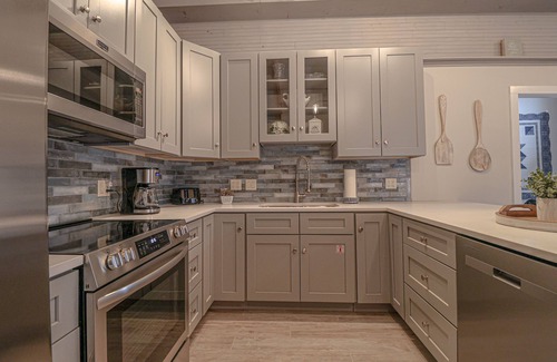 Completely remodeled in 2023 by Terry’s Remodeling , and owned by Sandy and Terry Blitsch. Located on the north side of a duplex also housing The Yellowstone. The Cottage sleeps 6 and has 1 private bedroom with a queen bed. Another bedroom also has a queen bed with a loft above containing a third queen bed. Enjoy the designer bathrooms with walk-in showers. The designer kitchen opens to the living room. Outside on the patio you will find a hot tub, grill area, seating area, fire table and a cornhole court. We are located in the center of Princeton on Main Street and you can easily walk to the north end or south end for shopping, dining, and bars.