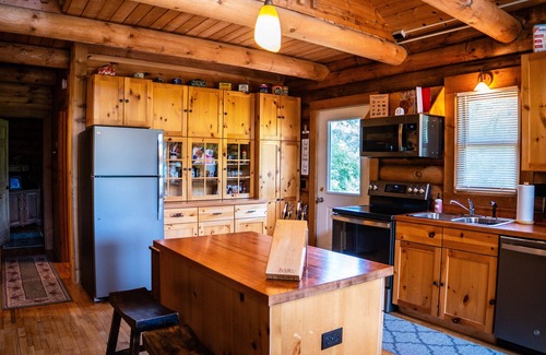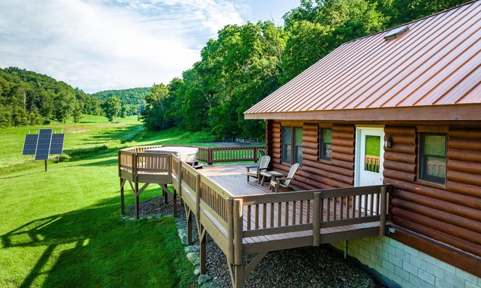 - Secluded Rustic + Modern Log Cabin with hot tub by Stream, luxury getaway
