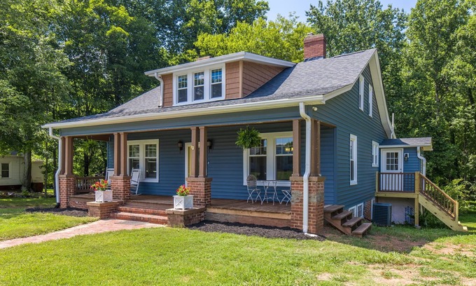 Enjoy the quiet evenings in Eden on either the beautiful back deck, or the charming front porch. This two bedroom, one bathroom country home has the charm of the 1920s, with all of the amenities we have come to expect from a well-appointed AirBnB. From the comfortable beds, to the fast WiFi- this house is sure to make you feel right at home. Tastefully decorated, and fully stocked- this house is ready to host you (and your pets) while traveling, and make you feel right at home!