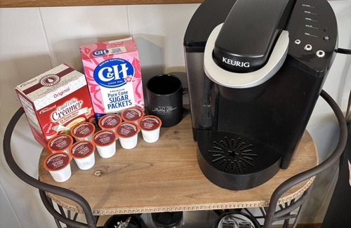 The kitchen includes all essential appliances and utensils—oven, stove, microwave, and refrigerator. Enjoy both a Keurig and drip coffee maker with coffee provided. A spacious dining area offers plenty of room for family meals or game nights.