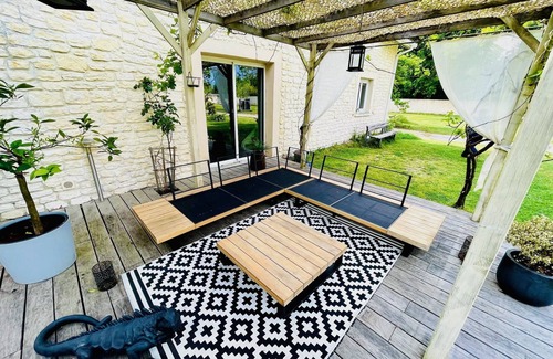 Terrace attached to the house of 60 sqm with garden, pergola and pool house (barbecue, plancha)