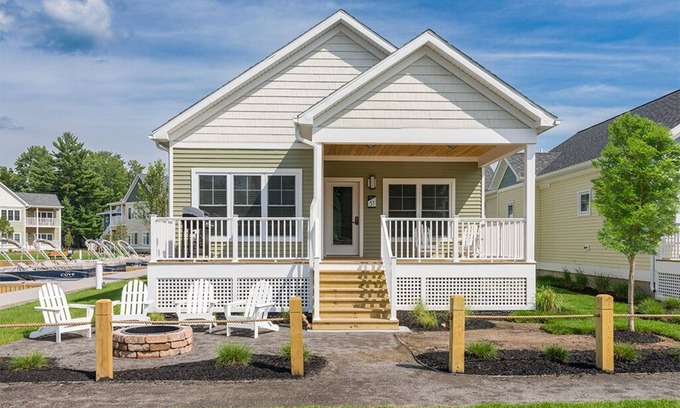 The Cove offers two-bedroom, two-bath units, each thoughtfully appointed with quality finishes, open concept living space, full kitchens, an in-home washer and dryer, fire pits, gas grills and more. The cottage includes a master bedroom with king-sized bed and en suite. The second bedroom includes two full XL beds and an adjacent full-size bathroom. You’ll also find surprising extras, including your own pontoon boat for the length of your stay, as well as exclusive access to a heated pool and playground.