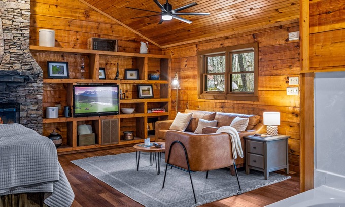 The Cove: Nestled amongst huge boulders and trees - Pool and Fitness Access! is located in Townsend. The Cove: Nestled amongst huge boulders and trees - Pool and Fitness Access! provides accommodation, featuring Air Conditioner, TV, Fireplace/Heating, among other amenities. This Cabin features Air Conditioner, TV, Fireplace/Heating, to make your stay a comfortable one.