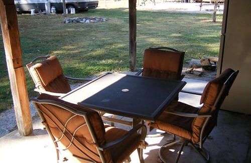 Fully furnished cabin, linens provided. Kitchen outfitted with pots, pans, dishes, and cutlery. Has coffee maker, microwave, toaster, etc. Living room has Satellite TV and DVD player. Wood Burning Stove for heat and two window AC units. Cabin has covered front porch and patio furniture. Charcoal grill at each cabin. Multiple firepits on property. Located 30 seconds from Lake. Ample boat parking outside cabin.