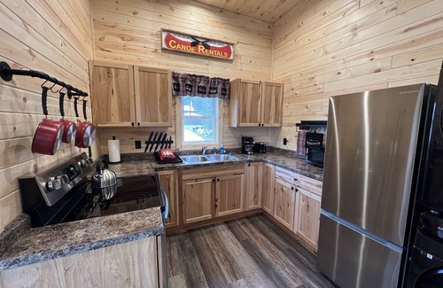 Come relax and enjoy Mississippi River views at the “Cozy” Backwaters Cabin in beautiful, historic Fountain City, WI. Nestled between the bluffs and the river, the Backwaters Cabin in conveniently located on Wisconsin's Great River Road and within walking distance to bars, restaurants and shops. Brand new inside and out, the Backwaters cabin offers a private master bedroom with Queen bed, closet and TV, a full bathroom with tub/shower, bunk bed, dining table, fully equipped kitchen, living area, stack washer/dryer, off street parking and private fire pit/ grilling area.