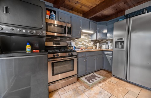 AMENITIES - Smart TVs, streaming apps along with fast WiFi, record player, and PlayStation will keep you entertained while you wind down in the evenings. Enjoy the jet tub with a relaxing bath. Board games and card games. The property features a unique pellet-burning stove. Laundry area with stackable washer/dryer.