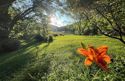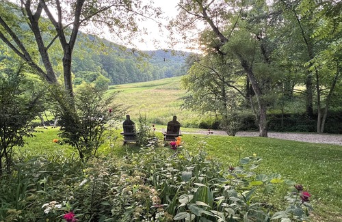 From the back porch, settle into a rocking chair and take in sweeping views of the meadow and tree-lined ridges—watching mist rise over the holler as birds call through the morning stillness.
