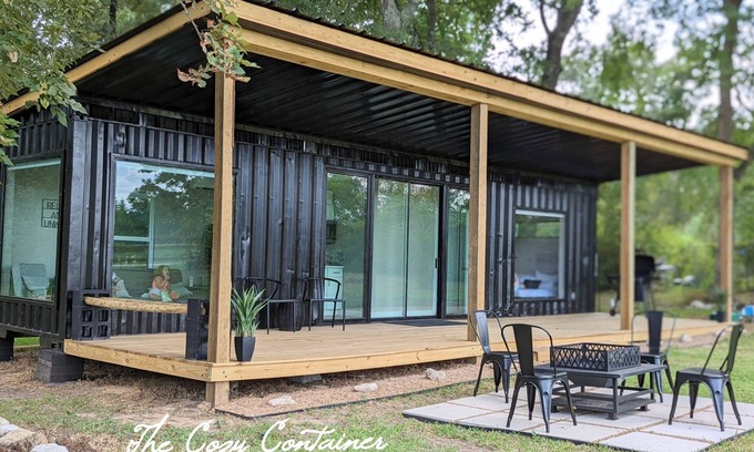 Just 2 minutes from the cozy country town of New Waverly, TX, The Cozy Container provides a unique experience, a peaceful stay, and a beautiful view. This eco-friendly tiny shipping container home has one bedroom with a queen bed, one bathroom, a futon (sleeps 1-2), and a convertible chair bed (sleeps 1). 40'x 10' wood deck for relaxation and entertaining. A winery, coffee shop, and several local restaurants downtown, are within 5 minutes! Only a few minutes to many nature trails and forrests, and only 20 minutes to beautiful Lake Conroe! Come experience peaceful country living with us! You get a handcrafted wood gift from our neighbor woodworker, and when you book a pet they get a special treat on us as well!
