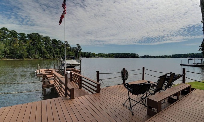 Gather your group at this renovated log cabin tucked into a peaceful cove on Lake Murray. After a fun day on the water, relax together in the cozy living room, game room or out on the spacious porch with a hot tub. Fire up the grill or cook in the fully equipped kitchen, then share a meal on the deck while enjoying serene lake views.