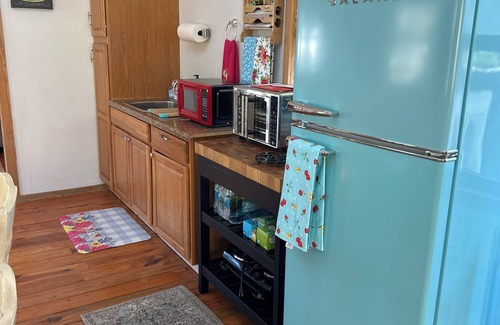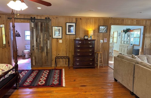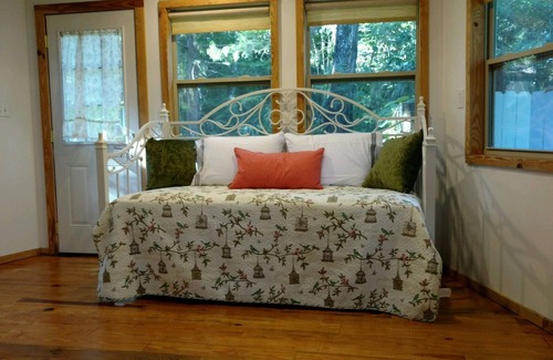 Rustic plank floor Cypress walls open floor plan 4 person lodge. Located close to everything yet feels secluded and rustic. Relax around the fire pit and have coffee on the deck while listening to all the wildlife. Sits on 1 acre surrounded by preserved woods with room to park your RV or boat. Walking/biking distance to shops and restaurants. Only 1-1/2 miles to boat ramp and village. One mile to Homosassa springs wildlife park. Completely renovated comfortable cabin type lodge home. We offer an efficiency kitchen. Mini Fridge, retro fridge, coffee maker, microwave, hot plate & griddle with full sink and BBQ. Enjoy everything the river has to offer by staying just minutes from it all. Fun, Food,Art, Kayaking, fishing, bird watching and more. 1 queen bed 1 pull out daybed for 2.