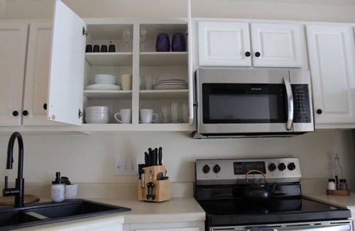 Nestled in a safe community, this two-story townhouse makes for a spacious stay near walking trails and pond!
