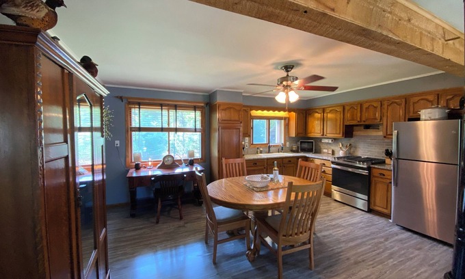 Consider this house your Island Getaway in the Great Northern UP, located on Neebish Island/Barbeau. This Cozy House sits on 20 Acres with an abundance of Mature Trees and Wild Life. Almost Every morning and evening you will see Deer in the Front Yard Grazing the Yard. Inside you’ll have 3 bedrooms including 1 king bed and 2 queen beds, 2 bathrooms with showers and one with an Antique Clawfoot Tub that will take away any stress, and essential amenities like New Stainless Steel Appliances, washing and dryer machine, WiFi, Central AC, and heating. You also will get to Cozy Up to Outdoor Fire Pit(Firewood provided for a small fee), A large Gas Grill(Gas Provided). Let’s talk about how you will be staying on an Island that’s located on The St. Mary’s River Shipping Channel! The International and Great Lakes Freighters that come thru on Each side of the Island, lots of Freighter watching heading to and from the Soo Locks, getting to hear and see the Freighters Salute, 1/4 Mile from the Boat Launch (Bring your Boat) and Island Park to View Freighter Traffic,the Abundance of Wild Life, Nature and Fishing! True Paradise!