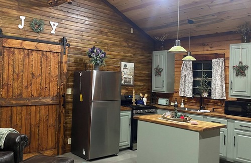 The Cozy Pines is a newly built, romantic log cabin with a 2-sided fireplace is located in Tishomingo. The Cozy Pines is a newly built, romantic log cabin with a 2-sided fireplace provides accommodation, featuring Balcony/Terrace, Security/Safety, Bedding/Linens, among other amenities. This Cabin features Balcony/Terrace, Security/Safety, Bedding/Linens, to make your stay a comfortable one.