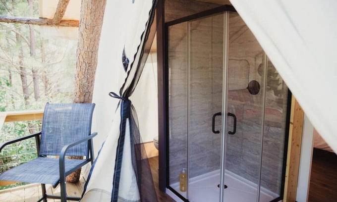 Best-rates for the The Creekview,Luxury Safari Tent starts from $288 per night with includes Barbecue/Outdoor Cooking, Child Friendly, Air Conditioner, TV, Balcony/Terrace, Security/Safety, Wellness Facilities, Spa, Internet, Kitchen, Bedding/Linens, Fireplace/Heating, Guest Services with all other amenities. Perfect for Weddings is committed to ensuring every guest experiences a comfortable and extraordinary stay, whether planning a romantic getaway, a honeymoon, a pet-friendly stay, or celebrating with the entire wedding party.