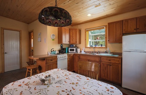 About the Twin Bedroom Cabin: This tiny cabin is designed as an add on to your unit. The cabin is located outside the garden area a minutes' walk past the chickens and geese from the Casitas. There is no bathroom just a twin bedroom, you must use the bathroom in the main Casitas you have rented. This space is designed for young adults minimum age suggestion is 14 years or older. Please Make Note in your reservation for us to contact you regarding availability for the cabin.