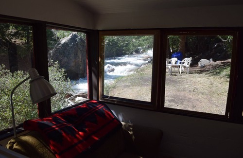 The Cricket is a rustic historic cabin hidden up Spring Street alongside the rushing Clear Creek and nestled among an aspen grove. While appearing to be off in a mountain valley, the Cricket is a mere 3 minute walk from the center of Downtown Georgetown -- AMAZING!!