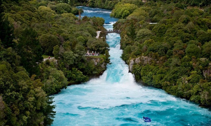 The intercity bus stop is in the centre of Taupo town. An easy 5 minute walk to the information centre known as the i-site. From there you can get a ride on the Taupo Hot Bus to Huka Falls and other attractions in the area. Huka Falls is 5 minutes drive north of Taupo.