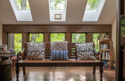 "The Crooked House" with A/C and sauna on private wooded lot near Killington is located in Stockbridge. "The Crooked House" with A/C and sauna on private wooded lot near Killington provides accommodation, featuring Internet, Laundry, Sports/Activities, among other amenities. This House features Internet, Laundry, Sports/Activities, to make your stay a comfortable one.