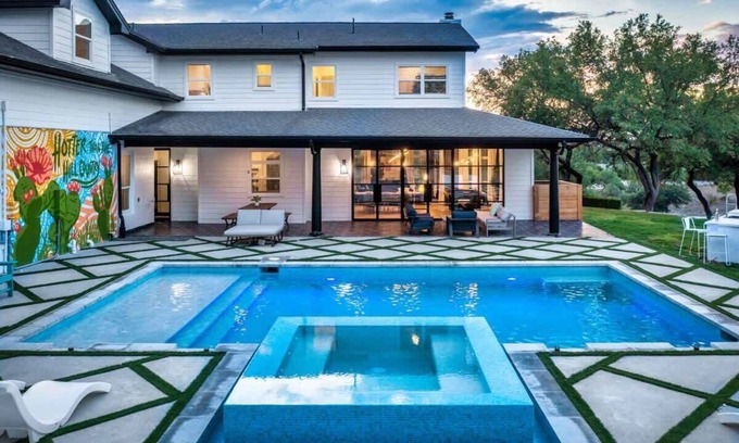 This spacious 9-bed, 7.5-bath home is perfect for weddings, retreats, and family gatherings. Enjoy a chef’s kitchen, indoor fireplace, outdoor fire pit, outdoor kitchen, ping pong table, and a heated pool & hot tub...all in a private setting with plenty of parking. Just a short drive from Austin’s top spots like 6th Street and Barton Springs, this home offers the perfect mix of luxury, comfort, and convenience!