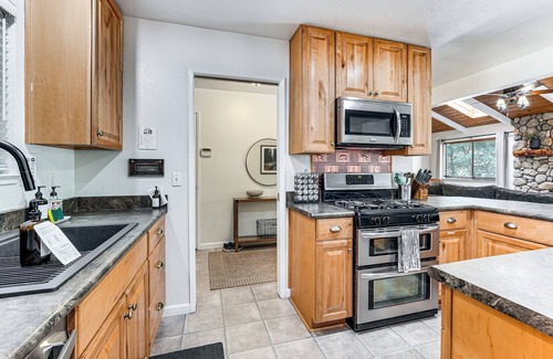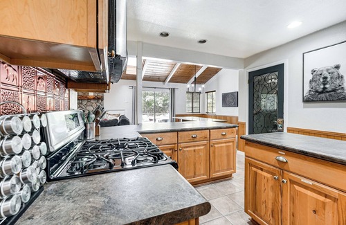 Surrounded by greenery, this spacious 4-bedroom, 3-bathroom Arnold vacation rental will make for a delightful getaway to the California wilderness. The cheery 2-story cabin boasts modern furnishings, 5 Smart TVs, a wood-burning fireplace, and ample parking. Let the kids loose in the backyard while you kick back on the deck, cozy up to the fire pit, or soak in the hot tub. Splash at White Pines Lake or venture through the sequoia trees at Calaveras Big Trees State Park. The Golden State awaits!