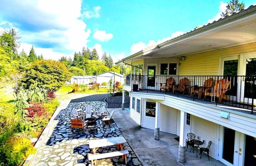 Situated just 3 minutes from downtown Forks, The Cullen's Clair de Lune is perfectly located for exploring the area's attractions. Discover the natural wonders of Olympic National Park and the Olympic Peninsula, including iconic spots like Rialto Beach and the Hoh Rainforest, both within easy driving distance. After a day of adventure, return to your riverside retreat to unwind while enjoying the tranquil sounds of nature around you. With everything you could desire at your fingertips, this estate provides an unparalleled backdrop for your unique wedding celebration.