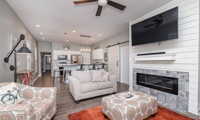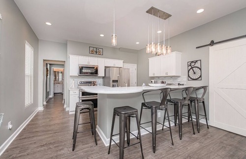 The Cycle Inn features elegant interiors equipped with two king bedrooms and one queen bedroom on the first floor, making it ideal for you and your guests to relax in comfort. Enjoy high-speed Wi-Fi throughout the property and take advantage of the fully furnished living spaces that provide a warm and welcoming retreat. For larger gatherings, the adjacent unit can be connected for extra space, ensuring everyone can come together to celebrate your love. Plus, the surrounding area is dotted with delightful restaurants, breweries, and coffee shops, giving you ample options to cater to your wedding festivities.