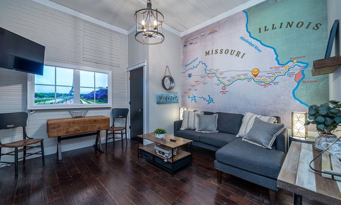 Welcome to The Cyclist! Katy Trail comfort in Marthasville, MO, a charming retreat that serves as an ideal accommodation for your wedding celebration. Nestled in the historic Marthasville Hardware Building, this cozy vacation rental boasts a romantic atmosphere, making it the perfect setting for newlyweds and their guests. With spacious units designed for comfort, you can enjoy both relaxation and convenience during one of the most important days of your life.