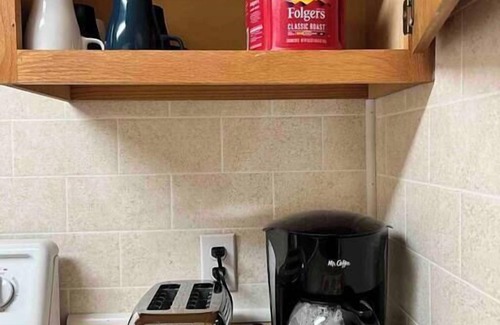 - Full size refrigerator, microwave, coffee pot (with coffee), and toaster