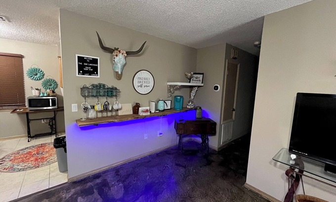 The Dam Lake House is the perfect lake getaway for couples and groups up to 8. It’s centrally located between (5) boat ramps providing plenty of water access and opportunities. You can rest easy with one king bed, two queen beds and an optional padded queen air mattress. Take some time to relax and unwind as you enjoy the convenience of free WiFi, a stocked coffee/hot tea bar, spacious 20-gallon icemaker for your favorite beverages, a game of shuffleboard, and a secluded backyard that includes a covered deck, fire pit, hammock chairs, and natural view. Conveniently located ½ mile from the Ladybird Landing boat ramps and the Eufaula Dam, or 2 miles from Evergreen Marina. There’s more than just the lake to enjoy here at the Dam Lake House! Other attractions include Twin Mountains Off-Road Park (15 miles) – bring your UTV, and Robber’s Cave State Park (28 miles) – perfect for hiking, scenic views, and great food. The famous Lake Eufaula’s recreational party island “The Cut” is only ½ mile by boat. So, whether you’re looking for good ol’ fishing, exploratory hiking, UTV riding, or fun in the sun, the Dam Lake House has it all!