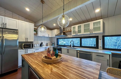 The kitchen is fully equipped with a Stovetop Espresso machine, Keurig, electric fondue set, and all necessary accessories. We also provide basic items like sugar, salt, pepper, spices, plastic wrap, aluminum foil, and vegetable oil.