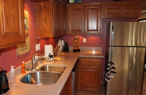 The cabin itself is warm and inviting, with an accommodating 1,152 square foot well designed floor plan one full bath downstairs, another full bath upstairs. Both bedrooms are upstairs and feature one Queen Bed in each room. Downstairs is a Newer Queen Sofa Sleeper with upgraded Gel Mattress. There's a very nice brick wood burning fireplace in the main living area and a convenient Gas Log Fireplace in the Master Bedroom! All the amenities and comforts of home include a fully equipped Kitchen, Keurig (Coffee is Included), Newer Appliances, Refrigerator with Ice Maker. Washer and Dryer, Nice Large Deck with Partial Ski Slopes View, propane BBQ. Free Wi-Fi, Bluetooth Speaker, Cooking Utensils, Paper plates, Paper Towels, newer bedding. Electric blankets on all beds, All TV's have access to Netflix, Amazon Prime, Hulu and Spectrum Live TV. As well as access to many others. (All Via Stream)