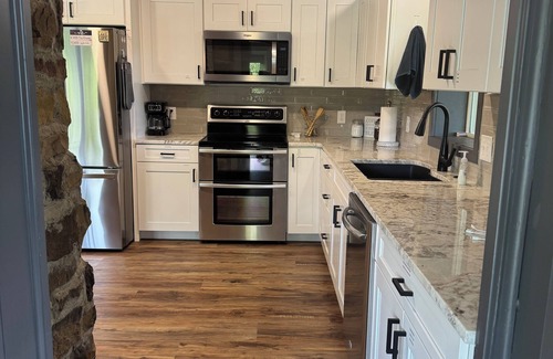 KITCHEN: Fully stocked with cooking essentials, plus toaster, blender, slow-cooker, waffle maker, drip coffee maker.