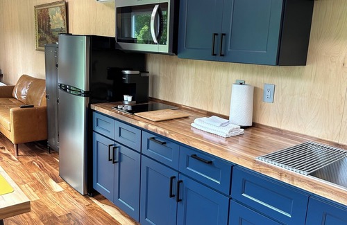 Designed for two, this retreat comes fully stocked with linens, towels, toilet paper, soap, cooking/eating utensils, Keurig coffeemaker and outdoor gas grill. Everything you need for a seamless stay! Hike the Gorge’s epic trails by day, then return to relax in the hot tub or cozy up by the fire.