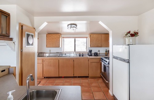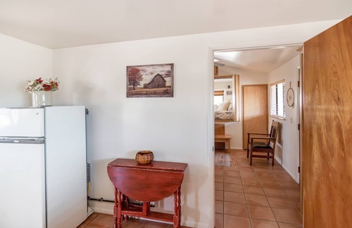Nestled amidst the scenic beauty of southeastern Utah lies the historic Desert View Cabin. As you traverse the winding roads of Utah State Route 211, en route to Newspaper Rock and the Needles district of Canyonlands National Park, you'll stumble upon the hidden gem. The cabin provides a full size kitchen with modern amenities which include stove, coffee maker, refrigerator, and toaster. The bedroom includes a full sized bunk, window full size bed and a full size bathroom. The living room and outside patio area is perfect for an evening of relaxing after a day full of adventures. Whether you're a history enthusiast or simply seeking solace amidst nature's embrace, this hidden gem promises an unforgettable experience.