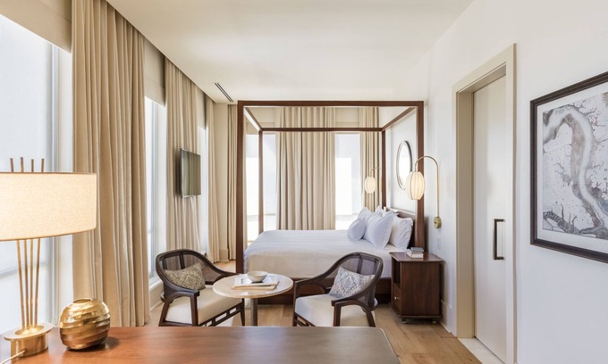 Best-rates for the The Dewberry Charleston starts from $457 per night with includes Parking, Security/Safety, Bedding/Linens, Spa, Toiletries, Entertainment, Laundry, Air Conditioner, Business Services, Wellness Facilities, Restaurant, Guest Services, Breakfast, TV, Wheelchair Accessible, Balcony/Terrace, Accessibility, Bar, Child Friendly, Internet with all other amenities. Perfect for Weddings is committed to ensuring every guest experiences a comfortable and extraordinary stay, whether planning a romantic getaway, a honeymoon, a pet-friendly stay, or celebrating with the entire wedding party.