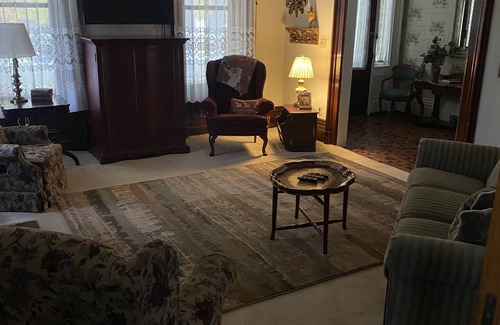 Bring the whole family to this great place with lots of room for gathering and fun. Historically kept, this home is filled with one of kind antiques and furniture. Wall paper and paintings date back several decades. Four bedrooms with five beds this home is equipped for large parties to stay and have a wonderful time. The Dexter Home is located in the historical heart of the city. Two blocks away from downtown and less than a mile from Ashland University.