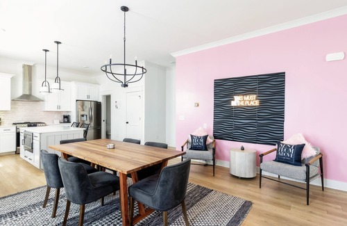 The Dolly + Iconic Women of Country 4bd Townhome is an ideal choice for wedding stays, offering a unique blend of comfort and style just minutes from downtown Nashville.